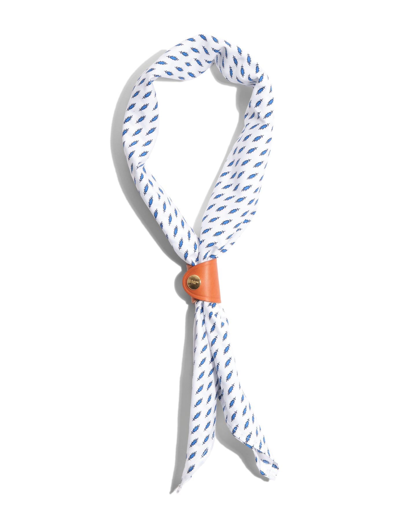 L’accessoire incontournable de nos cowboys camarguais, les gardians. Confectionné en voile de coton, léger et fluide, ce bandana peut se nouer traditionnellement ou à l’aide d’une bague en cuir pour un porté plus moderne. Son motif "plume", d’influence andalouse, provient de dessins d’archives déposés.