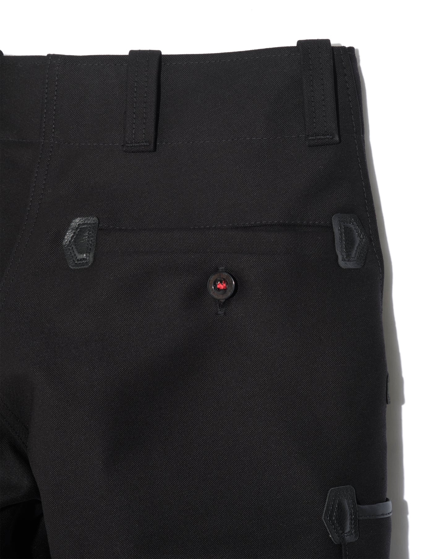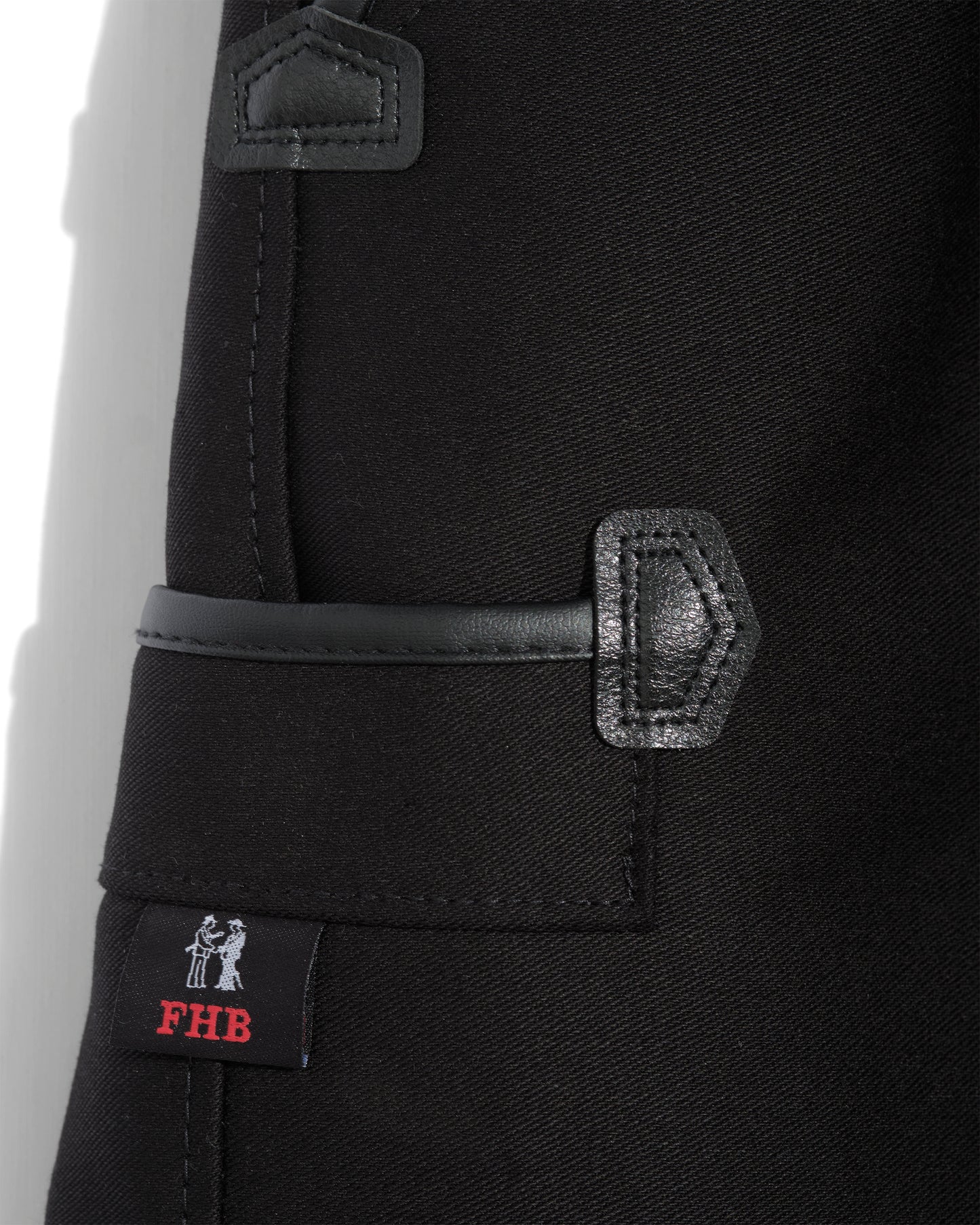 Moleskine 100% cotton 520 g/m² • Faux leather pocket reinforcements • Belt with 6 wide and solid loops • Bridge construction with double fly closure with brass zip and metal hook • Reinforced seam at the crotch • 2 slanted front pockets with pipes • 1 ruler pocket on right leg • 1 back pocket with button closure • German manufacturing • Washable at 60° • No tumble drying • No bleach • Ironing at 150° max • Dry cleaning permitted