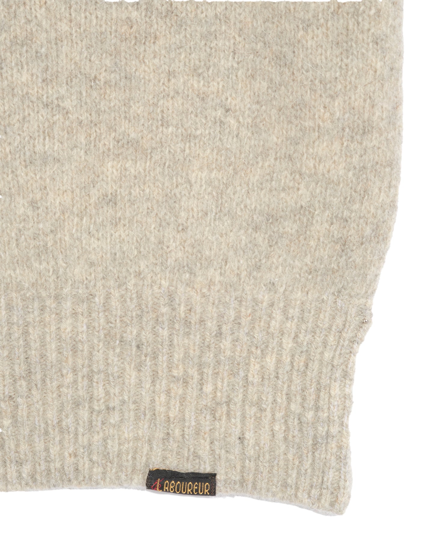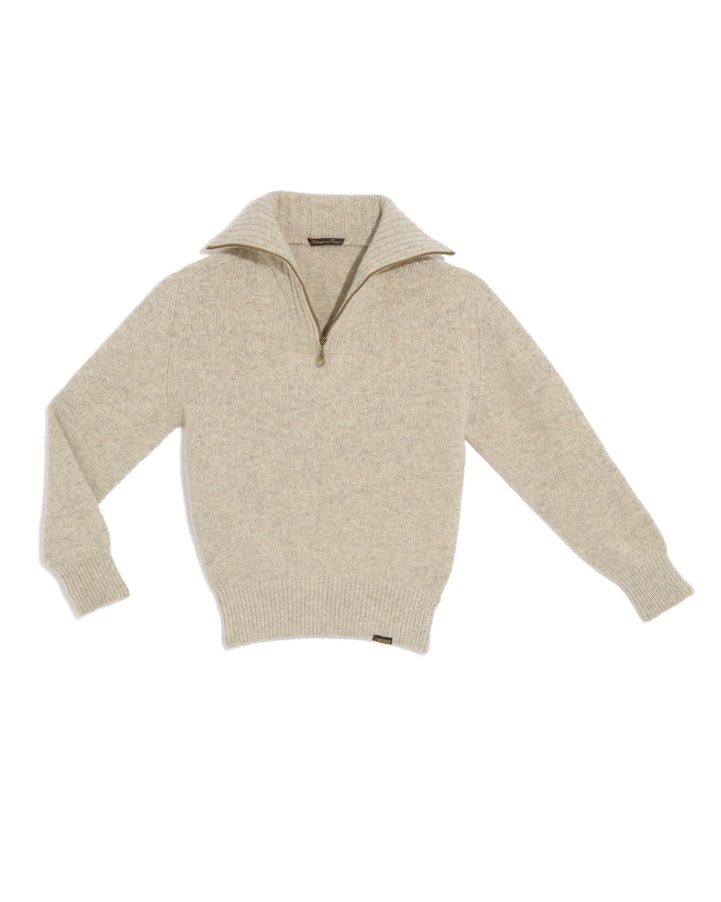 Attached to French manufacturing, the owners of Le Laboureur wanted to produce the Le Laboureur trucker sweater again in France. The meeting with Nathan Tordjman, knitwear stylist and Thomas Mustel, architect, made this desire a reality. The yarn is made up of half recycled wool, incorporating 20% of the defibrated scraps from brown Burel jacket sheets, and the other half of naturally brown virgin wool. The mesh softens, feels felt and becomes denser. It becomes rich, warm, comfortable and resilient to future machine washes. Anxious to combine technology innovation with the development of a traditional sweater, the choice was decided to work in “ full ” knitting, from the collar to the sleeves and the entire fall of the machine, without the need for sewing. When it comes out of the machine, the sweater is 1.5 times the desired size and looks like medieval chain mail. It must then be washed at 60°C without chemicals to felt it to its final dimensions. This last, crucial step gives the sweater its stability and resistance over time.