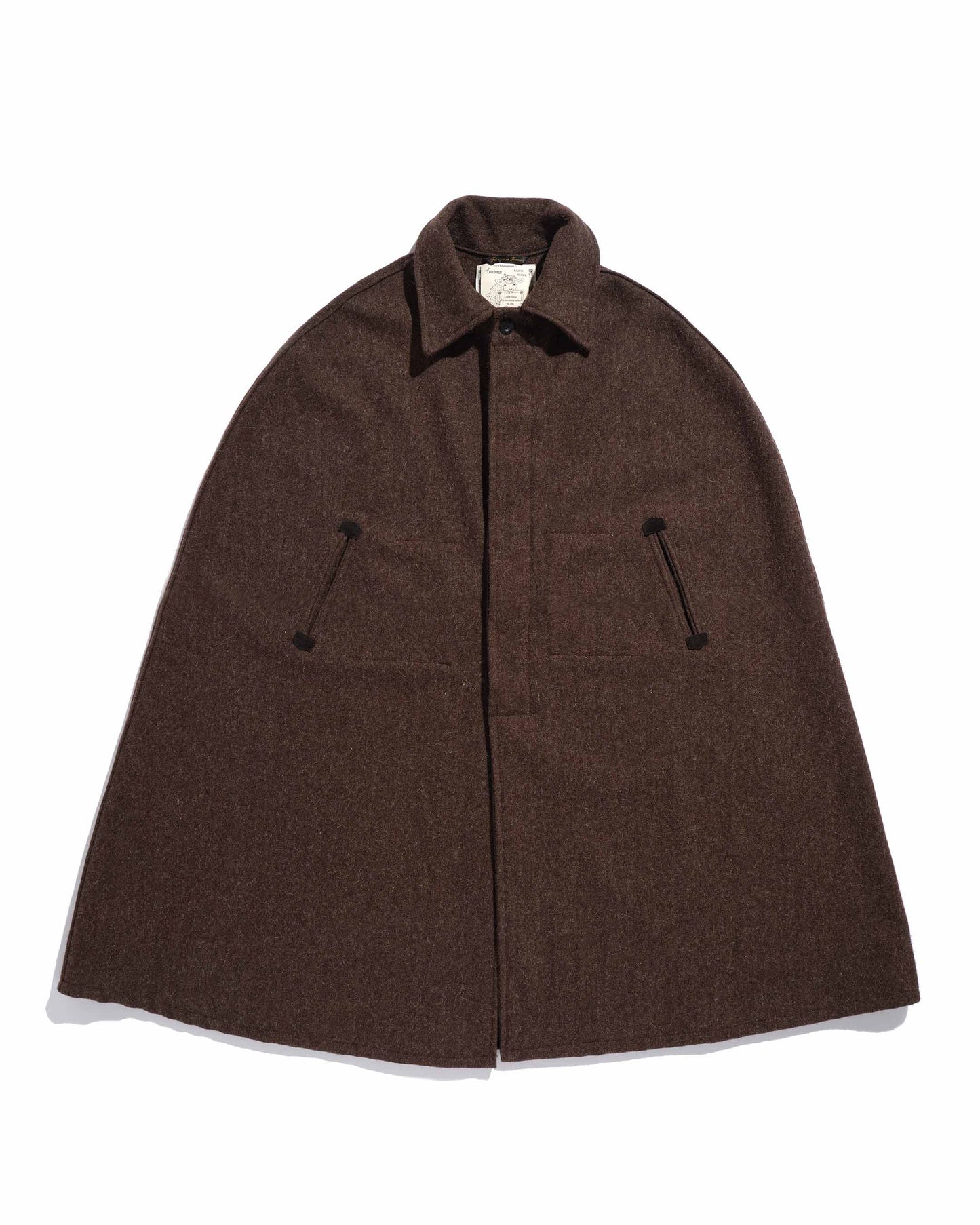 The shepherd's cape, made from natural wool from the black sheep of Ouessant, is a timeless garment, emblematic of the Ploughman. Its over-cape is removable. It has no sleeves, but slits for the forearms. Made in France (Digoin, Burgundy).